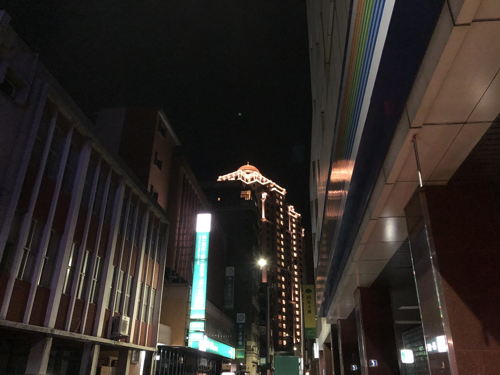 遠拍大樓燈色:在巷弄間看到遠處的大樓燈色很美,隨手拿起兩款手機拍攝,兩張照片有非常大的差別,這組就不用特別說明了。