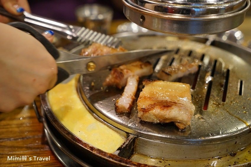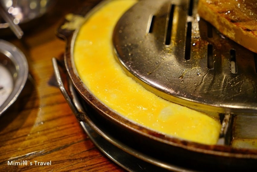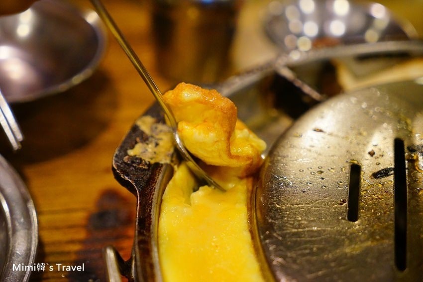沒多久,服務生就主動來幫我們加外圈的蛋汁了,這畫面其實在台灣很多韓國烤肉店也都陸續引進,香噴噴的蛋圈也是一大賣點呢~