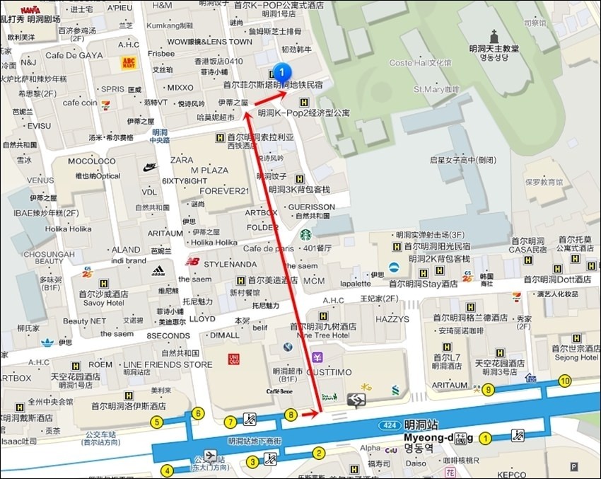 地址:首爾特别市中區明洞2街3-3 (明洞站8號出口)