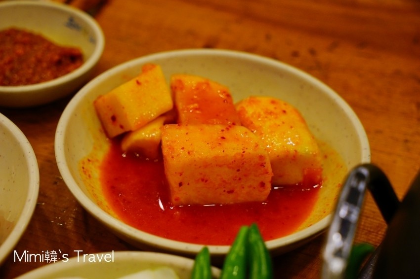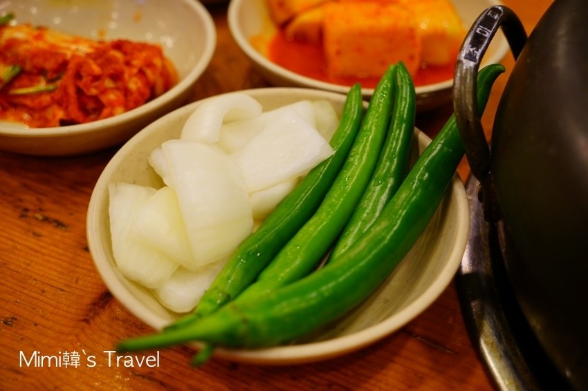 韓國美食餐廳都一定會有的泡菜、蘿蔔等小菜,還有他們韓國人好像很喜歡吃青辣椒沾辣椒醬,大家也可以試試看。