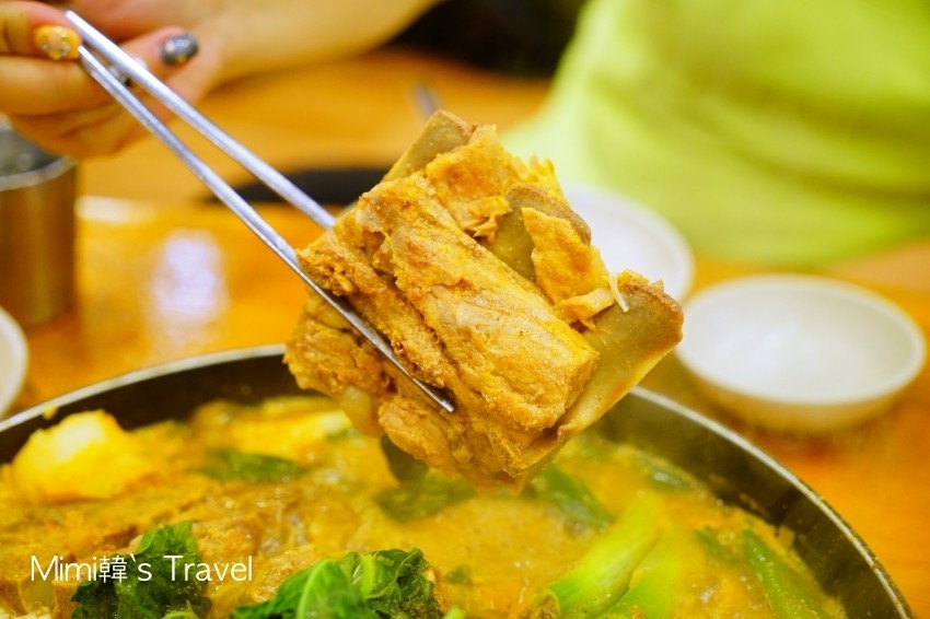 別看排骨好像很大一塊,其實店家都已經細心的把骨頭切開,利用桌邊的夾子和剪刀,就能輕易的分成一條條的模樣,上面的肉都燉到很軟嫩,筷子夾一下就能骨肉分離,搭配濃郁到不行的湯底,吃氣味、吃口感也吃飽足。