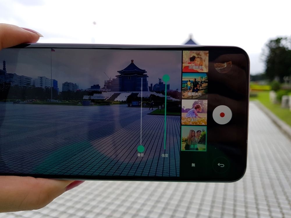 ▲ 「Cine Video」最大特色就是加入了 15 種濾鏡,用戶能夠依照想要錄影的情境來選擇,並且再進一步自行使用「暈影」、「強度」手動調節。