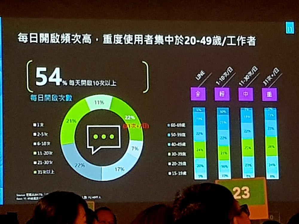 據最新尼爾森媒體大調查 2017 上半年度資料顯示,LINE 使用率逐年攀升,94% 受訪者過去七天有使用 LINE,各年齡層網友使用率均同步成長。且根據2017 LINE 使用行為研究調查,LINE 也已成為重要資訊管道!80% 表示看到 LINE 未讀訊息,雖然有點忙還是會「忍不住點開看」,76% 聽到 LINE 的聲音就有查看手機的衝動!54% LINE 用戶每天開啟 LINE 10 次以上,重度使用者(一天開啟 31 次以上) 集中在 20-49 歲的工作者。