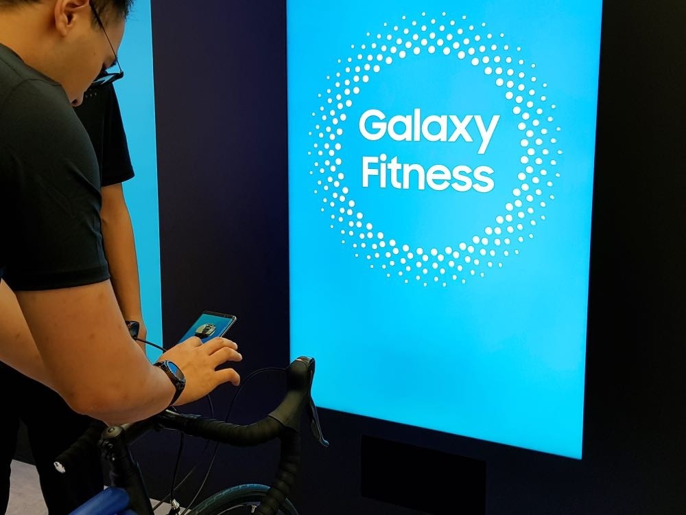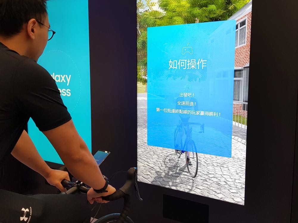 「Gear Fitness 你的健身教練」– 相當有趣的準備了兩台腳踏車,用戶可以與好友一起透過連線在大螢幕上比拼速度,並從 Gear Sport 監測心率等數據來了解自己的運動表現及狀態。