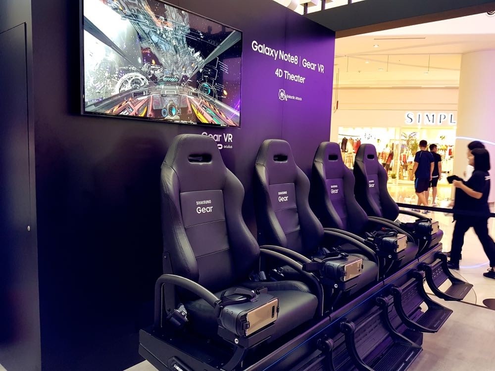 「Gear VR 4D 電影院」– 戴上 Gear VR,再坐上結合著畫面隨之移動的椅子,直接將眼中的畫面彷如身歷其境般的擁有全面動感。並且還搭配上 Gear VR 專屬遙控器,來射擊太空飛船保衛地球!