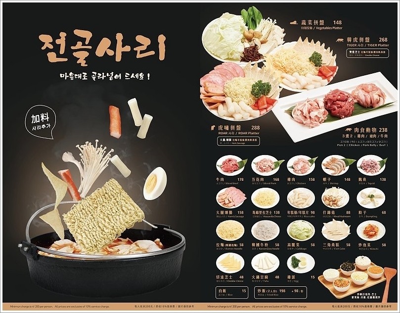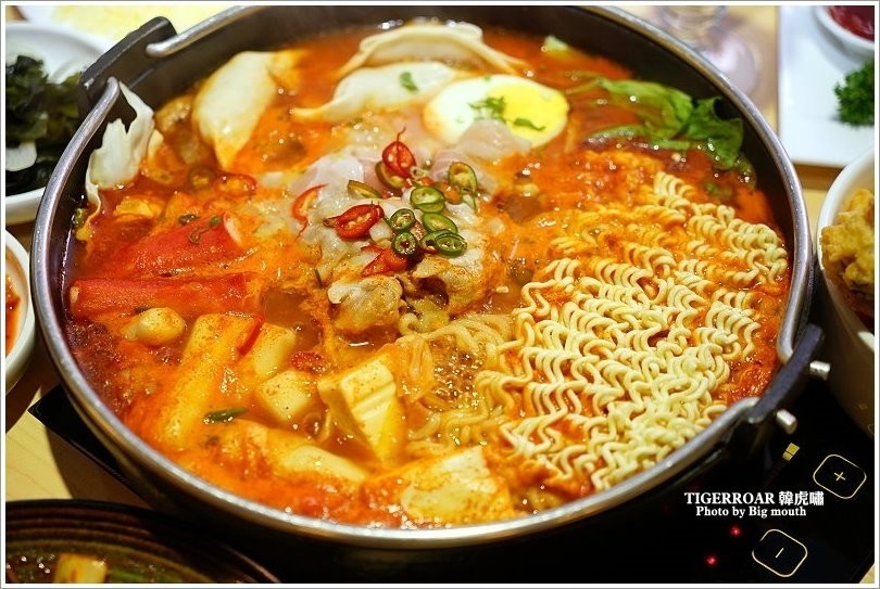韓國料理在台灣可說是越來越火紅,不僅變化多而且口味越來越好,連大口都喜歡三不五時就來吃一下!這次大口要介紹的「TIGERROAR韓虎嘯」目前全台有四個門市,大口就近選擇了台北統一時代門市來嚐鮮;隨著天氣越來越冷,來一鍋暖呼呼的年糕鍋正適合!這裡主打四大天王的韓式火鍋,也就是醬油、大醬、部隊、辣醬四種不同湯頭,一次就能吃到韓國各地的鍋物精髓!此外也有2、4、6人套餐,幾個人來就點幾人份,輕鬆又方便還能一次享用到招牌餐點!另外他們的特色炸雞、炒類、炸物等也都有不錯的表現,搭配韓國進口的飲品、燒酒或米酒就有一秒到韓國的FU啦!(未滿十八歲請勿飲酒)