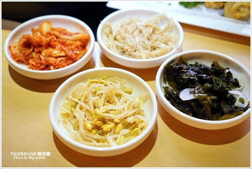 ▼一開始服務人員會先送上招待小菜,當天吃到的是韓式泡菜、豆芽菜、牛蒡絲、海帶芽,吃起來都頗為清爽開胃,之後續盤就會加收費用囉~
