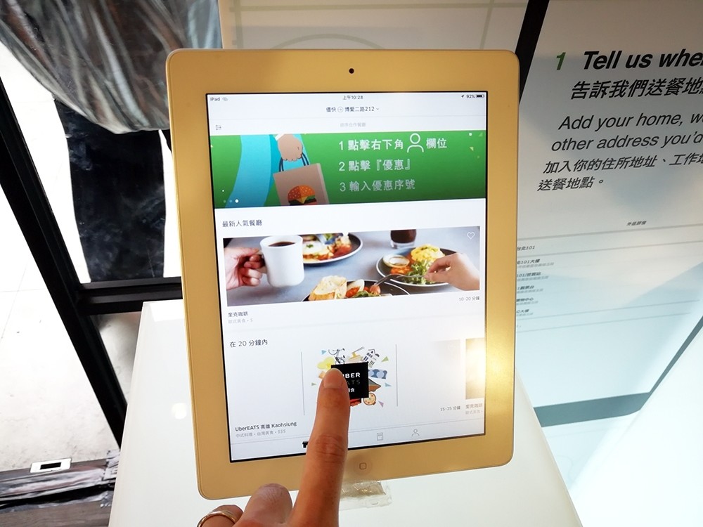 當然今天現場也有 APP 的展示區,其實還滿簡單的,打開 APP 之後只有四個步驟,把「送餐地點」填好,選喜歡的餐廳和「要點的餐點」選好,接著就能「一鍵結帳」,最後在手機上「追蹤訂單」狀況,一整個流程就是這麼輕鬆寫意。