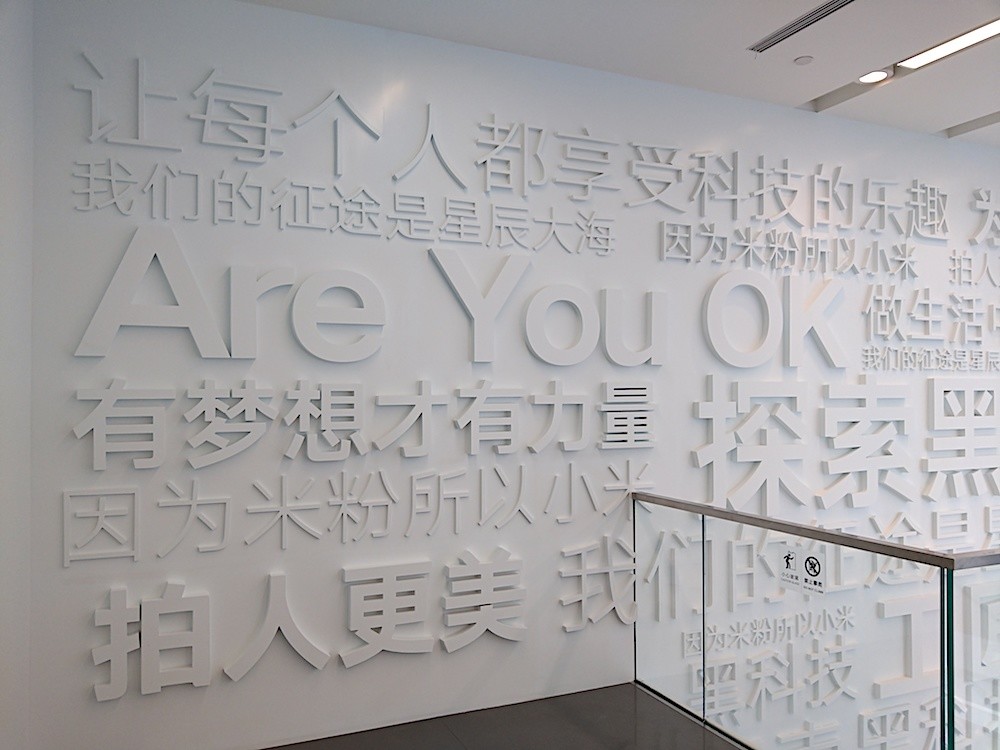 要通往二樓的樓梯旁,設有一面對小米人來說非常重要的牆面,小米人稱它為「小米之道」。上方佈滿了米粉們耳熟能詳的 Slogan,像是「Are You OK?」、「為發燒而生」、「不忘初心」、「探索黑科技」、「工匠精神」,置身店內不管是小米之家員工還是到店的米粉,或許都能一眼感受到小米獨特的企業文化精髓,藉此更了解小米這個品牌所堅持與努力的目標是什麼。