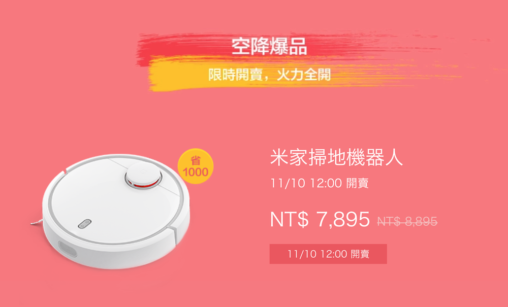 小米 1111 省錢大作戰活動,將於 11 月 10 日上午 10 點到 11 日晚上 10 點,活動期間多款明星商品,像是米家掃地機器人、小米空氣淨化器 2、小米手環 2…等,將有爆炸性優惠價格。而小米 Max 2、小米 Note 2、小米 A1、紅米 Note 4X,甚至小米體重計、小米盒子、小米頭戴式耳機升級版…等多樣產品也有價格上的優惠。此外,還有多達 12 款新品將在台首賣,數量有限,米粉們要買要快