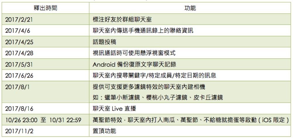 2017 LINE 十大愛用新功能(依照上線時間列出)