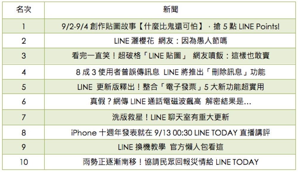 LINE TODAY 2017 十大熱門 LINE 新聞(依照瀏覽量排序)