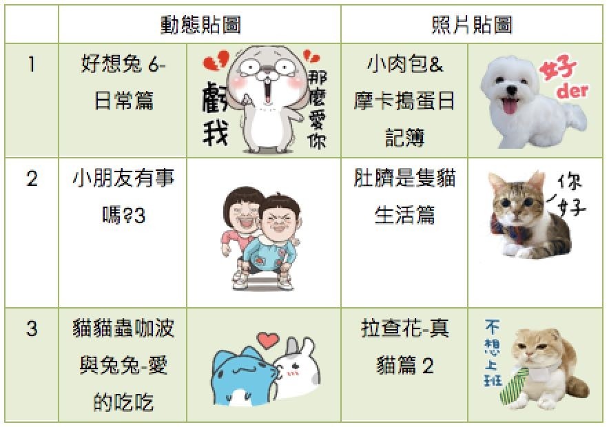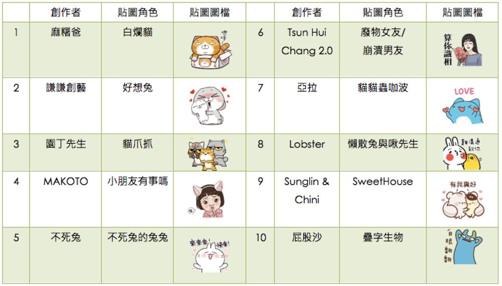 LINE 原創貼圖 2017 其他類型榜
