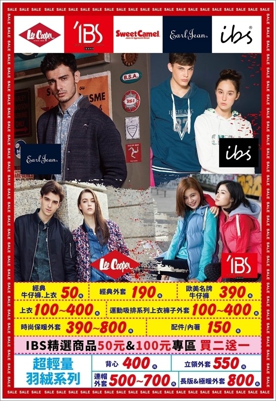 ▼大口看到有幾件不錯的褲子,仔細一看都是IBS的;IBS成立於1982年,跟我們年紀差不多耶(不小心暴露年齡了!)「Independent Body & Soul」則是IBS品牌的名稱由來,就是要強調每個獨立靈魂的身體跟主張啦~同時也是流行與時尚的代表!現場看到的IBS牛仔褲、工作褲或卡其褲,也都是百搭款,通通都是50元,穿得下的朋友記得多挑幾件啊!而且大口看到不少牛仔褲都是使用美國棉製造,品質也有一定的保證!