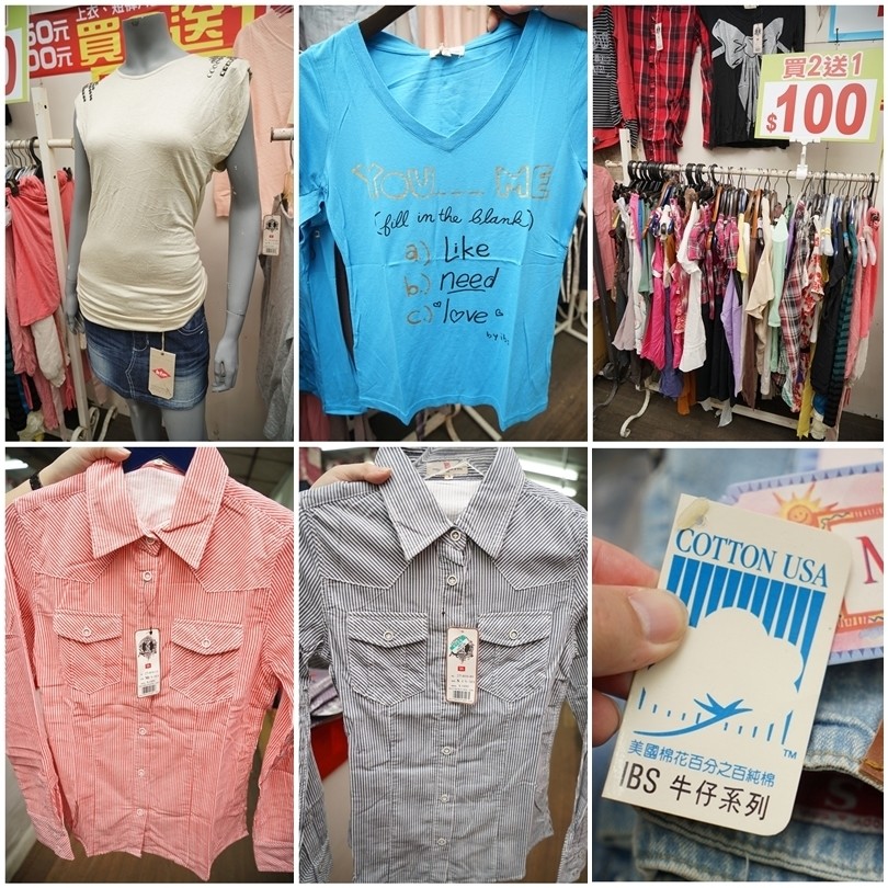 ▼這一區上衣除了每件100元之外,重點是還買2送1,折下來每件不到70元,真的是便宜到一個爆炸!