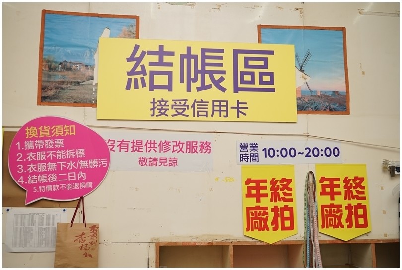 ▼結帳區,這裡都可以接受信用卡,不過沒有提供修改服務~但依這種超值的價格去外頭修改也非常值得啊!另外也有換貨須知,大家可要仔細看清楚唷!