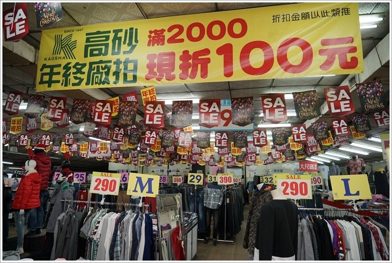 話說高砂紡織算是大口從小逛到大的好朋友,不僅品牌優、質感佳、版型好,品質也有一定保證,趁年終廠拍的時候來挖寶更是時候!大口建議大家一開始可以先看看50元必殺區、100元超值區,通通買2再送1,買一件賺四件!另外還有190元外套區及290元衣褲區,更是現買現賺!另外喜愛牛仔褲的朋友一定要來看看390元超時尚牛仔褲專區,還有分男女跟尺寸,重點是還有超大尺碼,喜愛的朋友一定不能錯過!喜愛戶外休閒、登山活動的朋友也可以來採購休閒機能衣褲與機能外套,通通以最低價150元起大出清,吸濕排汗又好穿!最後想要出國玩耍或是怕冷的朋友可以看看經典不敗的羽絨背心與外套,各種款式、顏色跟尺寸應有盡有,每件也才賣你400~800元,多買幾件外出旅遊或避寒都值得~大口真心覺得特地來一趟大採購都值得,非常值得攜家帶眷來搶購!這次的高砂紡織廠拍搶購攻略跟大家分享分享,祝福大家都能買到手軟、穿得開心!