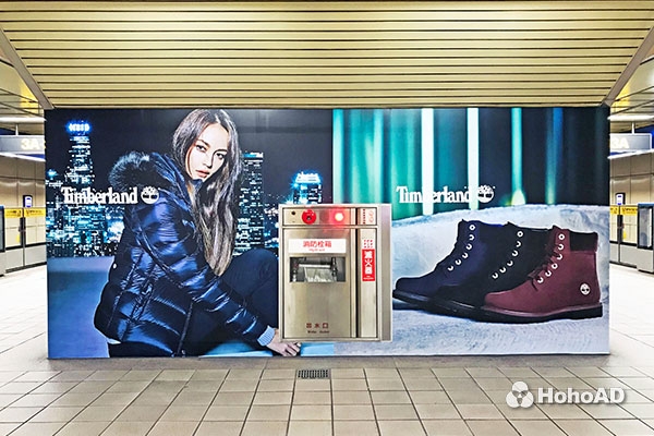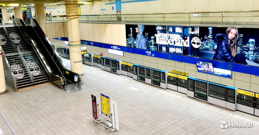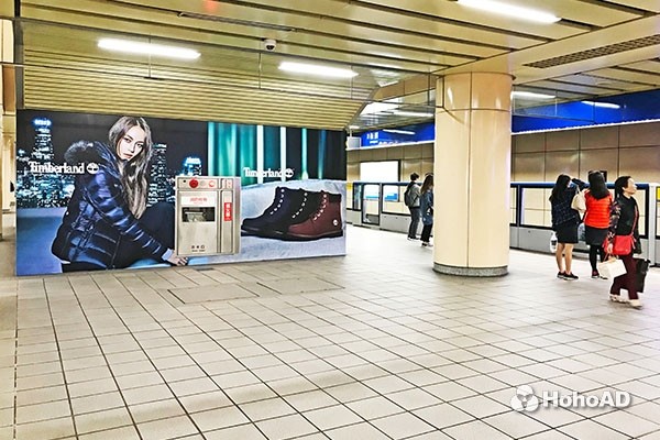 年底放大絕!Timberland此次替捷運板橋站注入全新視覺,從月台層開始,兩側對應閘門貼與大器之最—琺瑯板貼,強力溝通上下班/學通勤族、觀光旅客,位置版面=訊息全都露!出入站必經的顯眼樓梯貼,展現品牌絕佳風範;佇立的圓柱壁貼,雙面夾攻,網羅全旅客視線!不僅全面佈局捷運站內,戶外大型特殊裝置,更成為吸睛焦點!引爆線上熱潮、促進線下互動,讓人潮話題擴散不間斷!