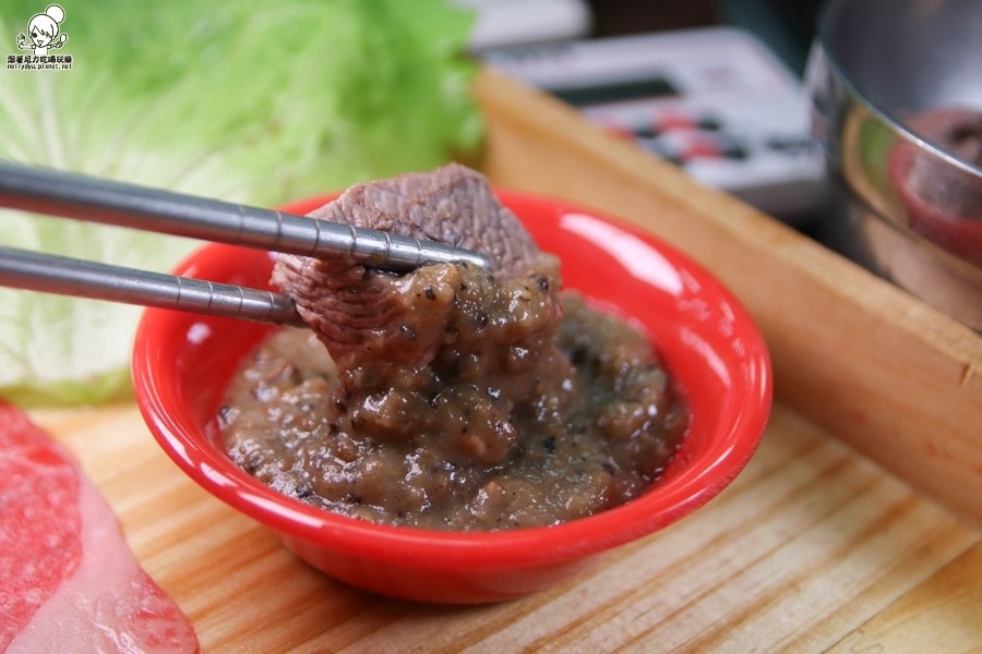 可以先吃原味霜降安格斯,再沾上新新園火鍋特製的沙茶醬提味,引出不同香氣