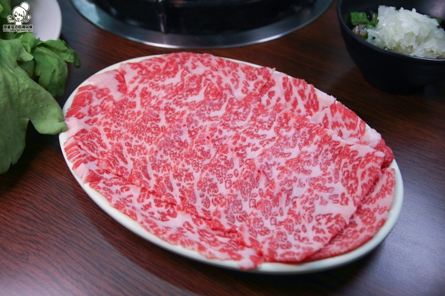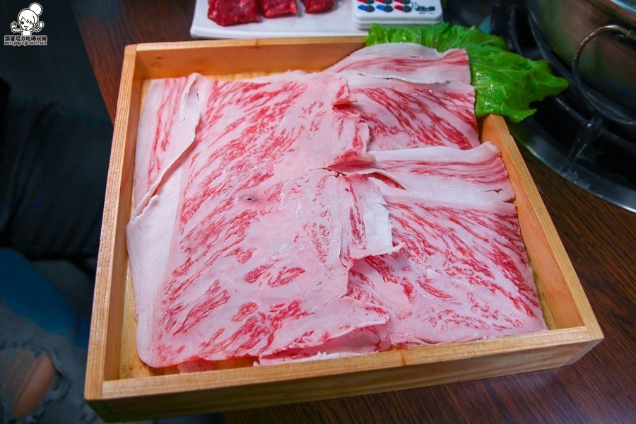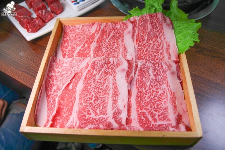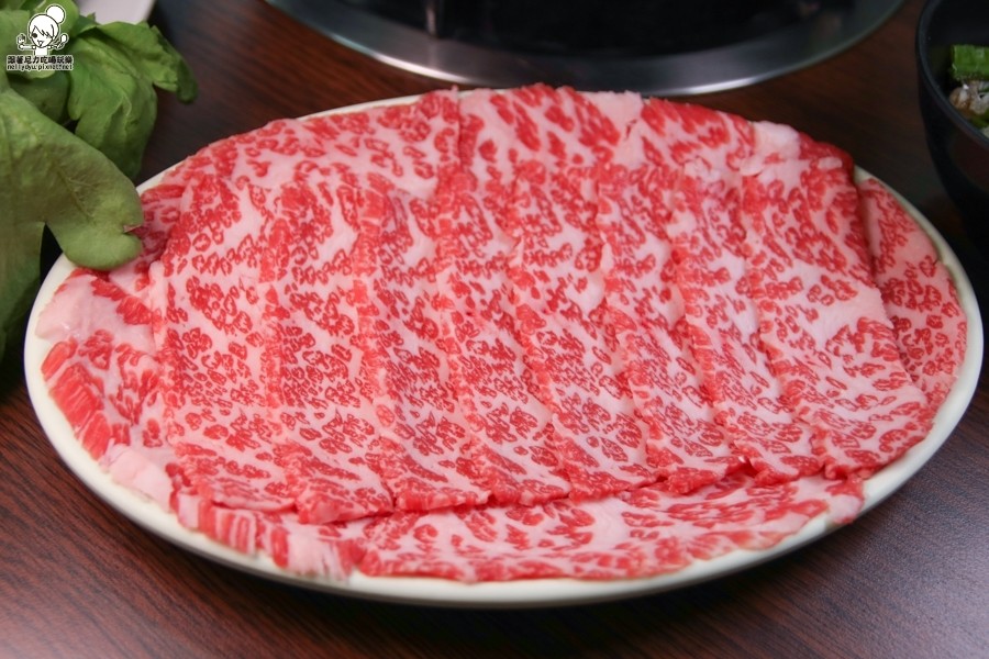 新新園汕頭火鍋使用鹿兒島日本和牛,A5頂級黑毛和牛,光是看肉質的鮮度與油花就覺得好像畫作