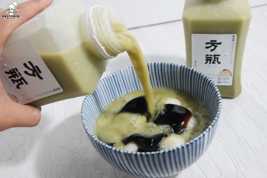 再將圓石抹茶米奶倒入,份量可以依據個人需求來做添加