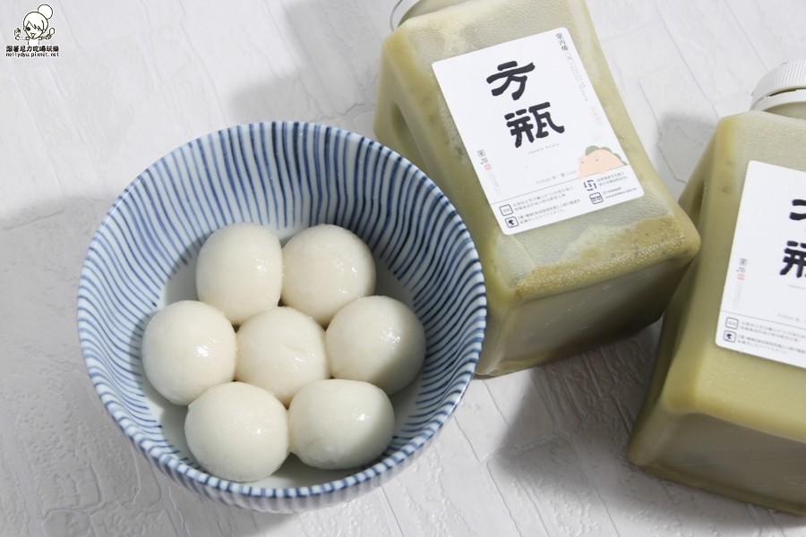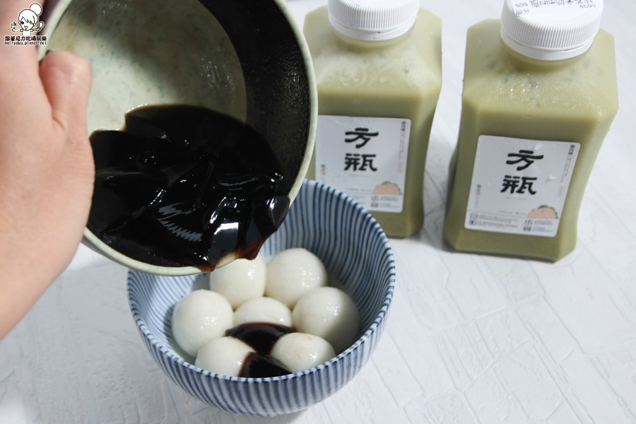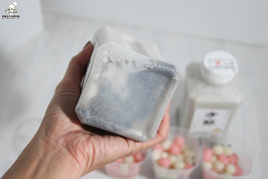 我使用的湯圓是熱的,淋上冰的圓石抹茶米奶,增加了湯圓的Q彈口感唷!