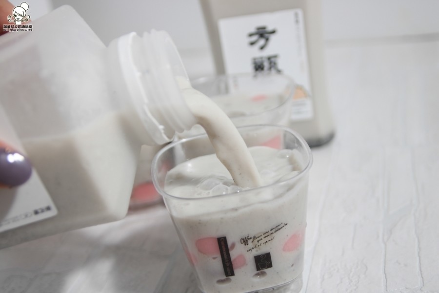 接著將芝麻燕麥奶倒入容器,大約8分滿即可