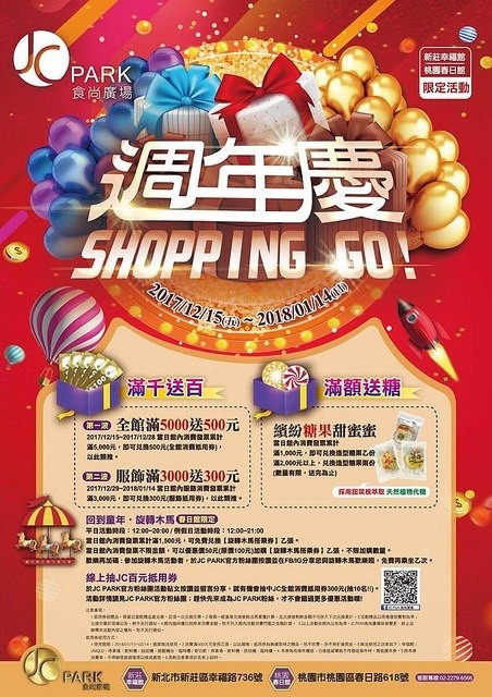 ◎jc park周年慶一直到2018/1/14,周年慶蠻多活動大家可以趁著這個機會撿點便宜好康