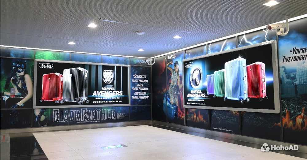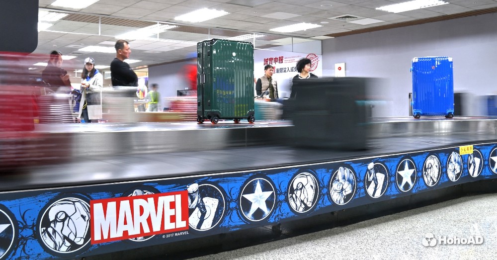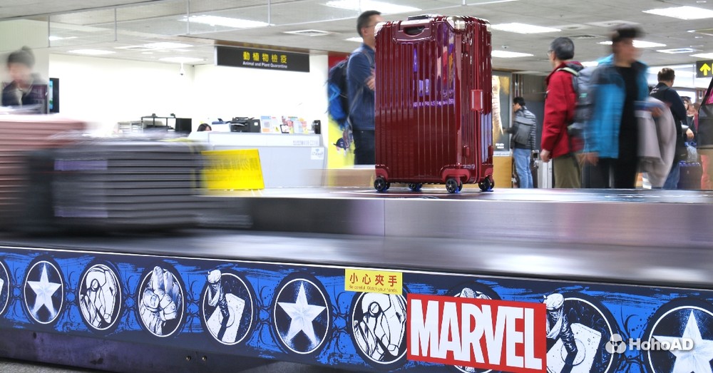 機場有讓旅客長時間停留,且不得不看廣告的環境,根據統計,有超過81%的的機場旅客會關注廣告信息,且有70%的機場旅客會記住廣告內容。DESENO此次推出「Marvel漫威復仇者系列旅行箱」,包含鋼鐵人、美國隊長、浩克、雷神索爾等知名英雄,全都有相對應的專屬造型與顏色,為了大力宣傳特色新品,DESENO專程將各款行李箱搬到台北國際機場,鎖定旅客勢必停留的行李轉盤區展示產品,不僅網羅所有入境旅客目光,更有效打開品牌知名度!產品展現最具體!觸動慾望最直接!觸及人流最真實!行李轉盤創意廣告勢必成為未來行銷的熱門選擇!