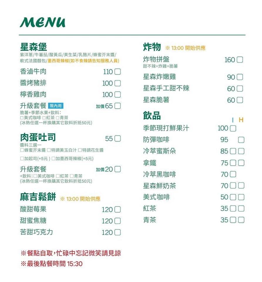 另外還有肉蛋吐司、麻吉鬆餅、烤物、炸物、多款飲品