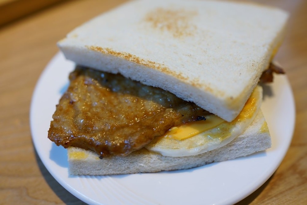 元素很簡單,就是吐司夾肉排、煎蛋,起司是我另外加點的