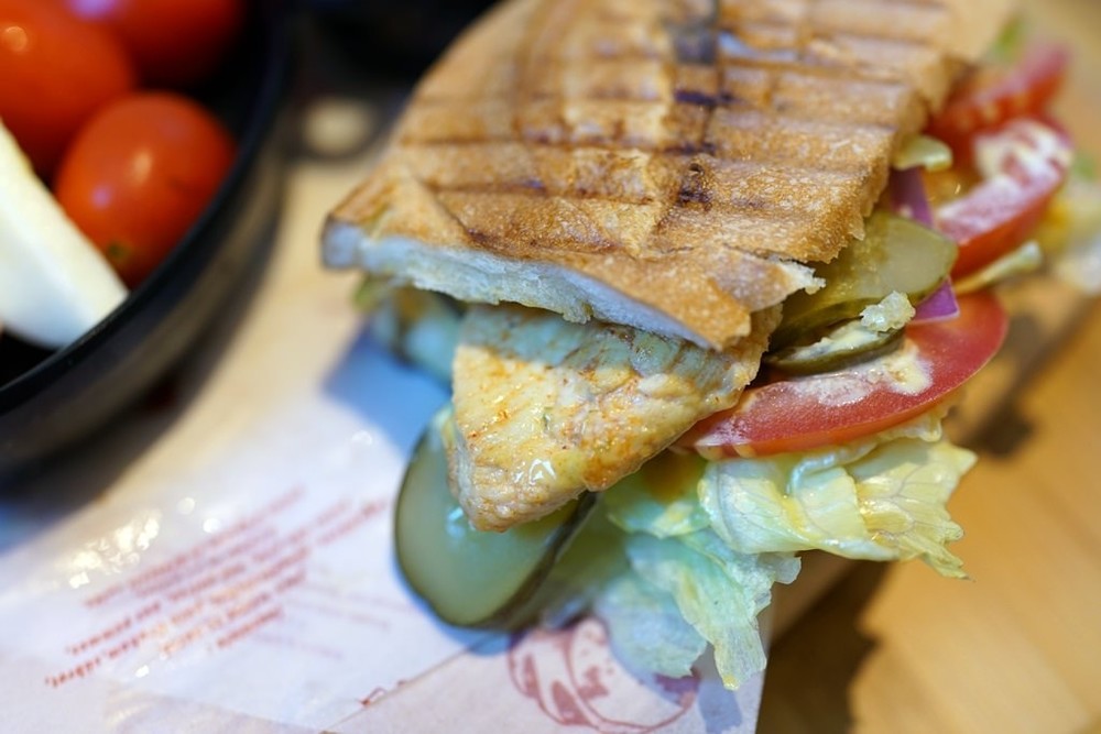 以軟式法國麵包夾著紫洋蔥、牛番茄、酸黃瓜、美生菜、乳酪片、蜂蜜芥末醬、墨西哥辣椒,這些配料在菜單上都有標示,如果有不敢吃的,可於點餐時告知服務人員,整體配料相當豐富,這套是我同事點的,她說整體口味不錯,且吃完很有飽足感。
