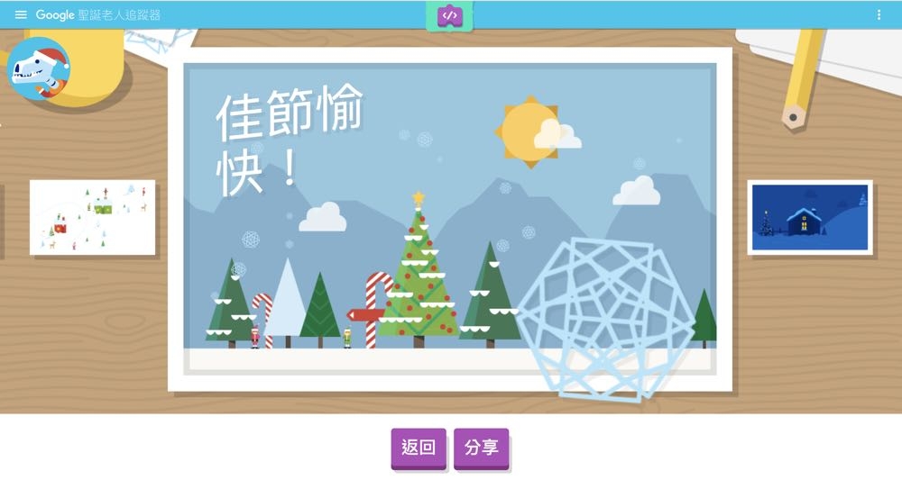 在 12 月 1 日至 4 日的遊戲中,有著用程式碼來製作自己喜歡的雪花造型,還能選擇不同背景的卡片設計; 跟著音樂節奏一起用手指來跳跳聖誕舞… 你還沒買聖誕倒數月曆?那就跟 Google 一起來歡樂倒數聖誕節吧!