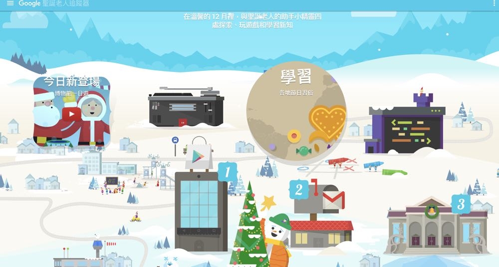 這次的聖誕老人追蹤器 (Santa Tracker) 除了每天會開放不同遊戲方式的新內容以外,上方主題還推出了「遊戲」、「遊戲-各地節日習俗」、「遊戲-程式碼實驗室」三大主題,讓所有的學習都能夠既生動又實用。