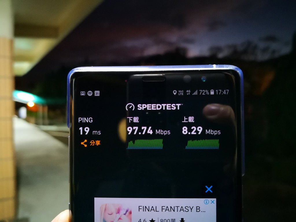 測速點 站外廣場 下載 91Mbps、上傳 7.1Mbps