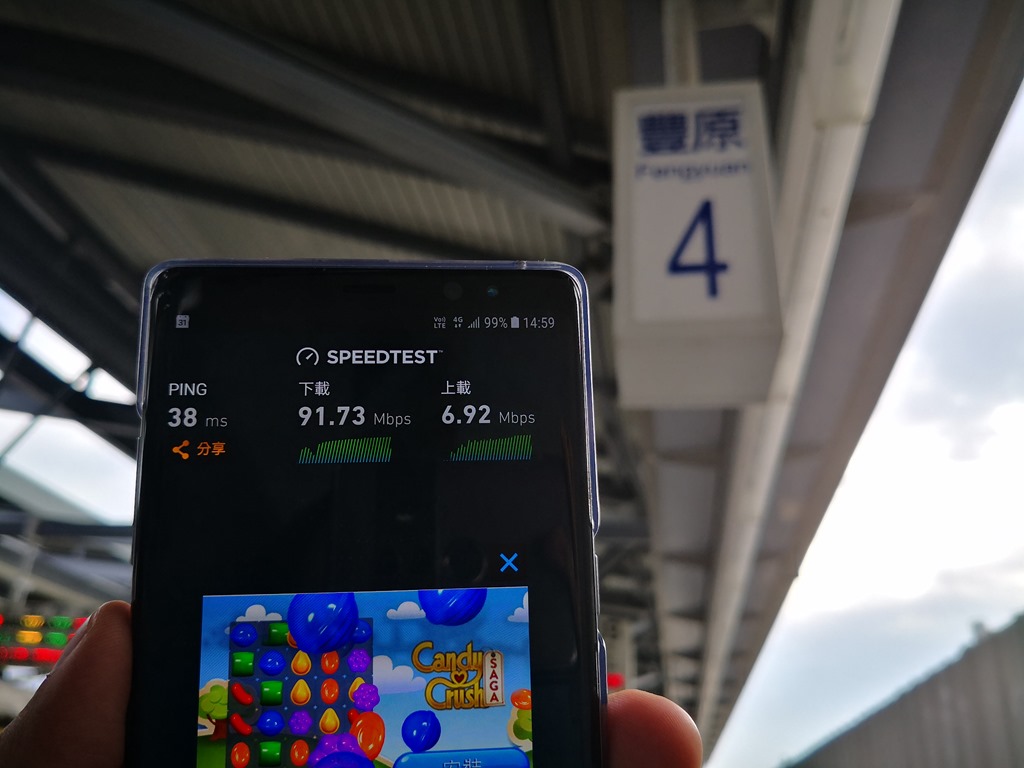 這次在車站的測試中,包含不少車班與使用人次較少的站點,像是日南、大肚、花壇、銅鑼、造橋…沒想到都可以測到非常優秀的速度,就算到站外還是可以延伸其訊號,服務範圍更廣闊,這樣的服務方式更容易讓客戶有需求時,就以最有效率的方式來解決客戶需求。總之這次的測試很有感,亞太的訊號與速度一直在快速進步提升中,希望不只在車站,之後在更多地方都可以有更完整快速的訊號服務。