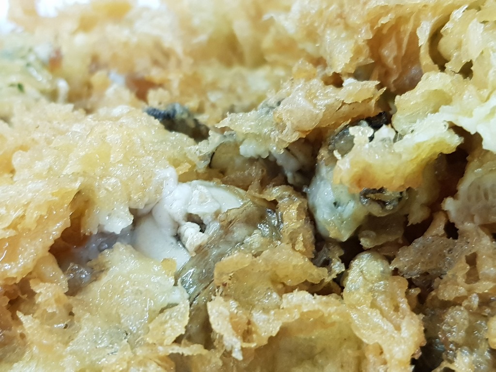 我們點的鴨蛋蠔餅終於來了,看起來像是用鴨蛋包裹著牡蠣下去油炸而成,表皮酥脆充滿蛋香,牡蠣又肥又大,外酥香內柔軟,無論是口感或是口味都非常棒,推薦這道菜一定要點。