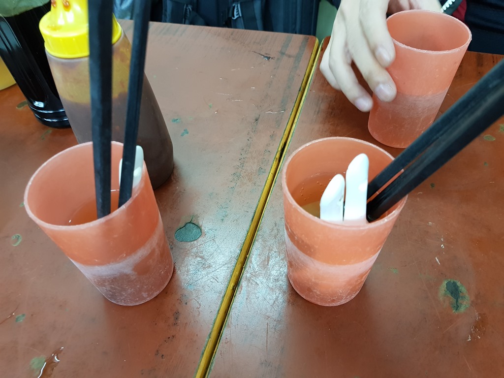 一坐下後,在地人就把筷子與湯匙丟到杯子中拿熱茶浸泡,他是說洗一下餐具,不知道台灣是不是也有朋友這樣做?