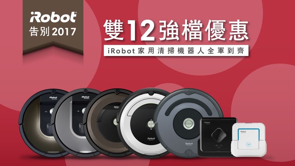 在雙 12 檔期即將到來之際,iRobot 順勢加入消費者引頸期盼的 WiFi 旗艦款掃地機器人,如:Roomba 980、Roomba 960 及 Braava 拖地機器人系列。iRobot 家用清掃機器人全軍到齊後,消費者只需在家動動手指就可彈性地針對個人的居家環境需求下單購買產品。而在雙 12 檔期間,momo 購物網、PChome 24h 購物及 Yahoo 奇摩購物中心都將推出專屬獨家優惠,超低的驚喜價格更是入手耶誕大禮的好時機!