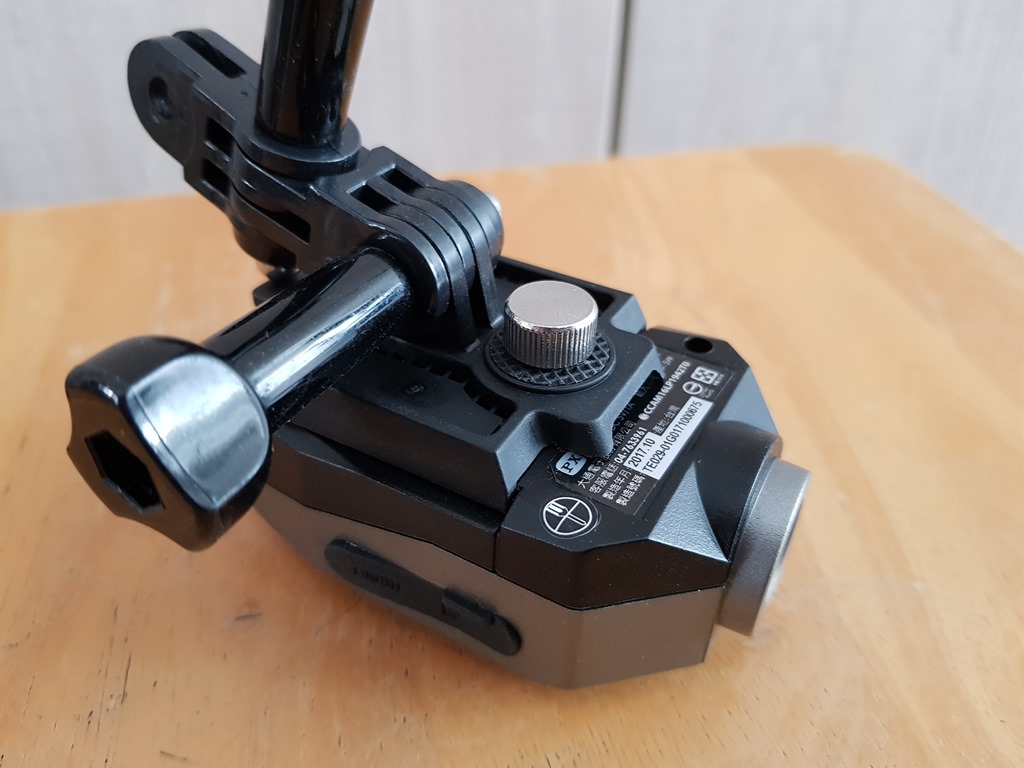 除了易拆的滑軌式底座外,為了避免在顛簸路面使用或是進行極限運動攝影時,可更牢固地將攝影機所在底座上,他還附上可直接鎖上的易拆螺絲,讓紀錄器不會因為強力震動而脫落,但平常在一般道路上應該使不需要使用。
