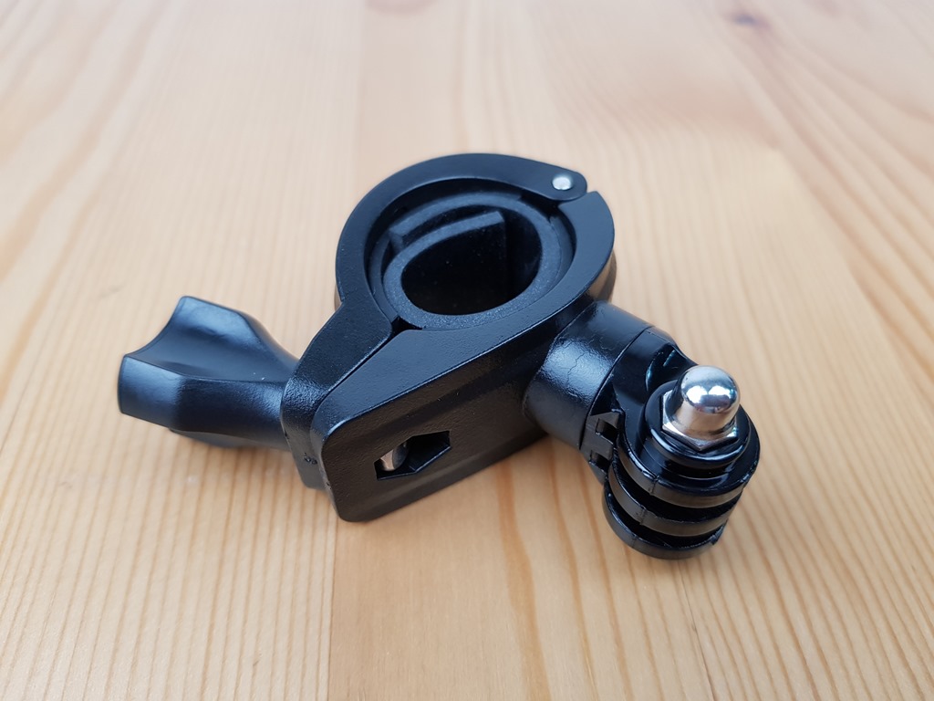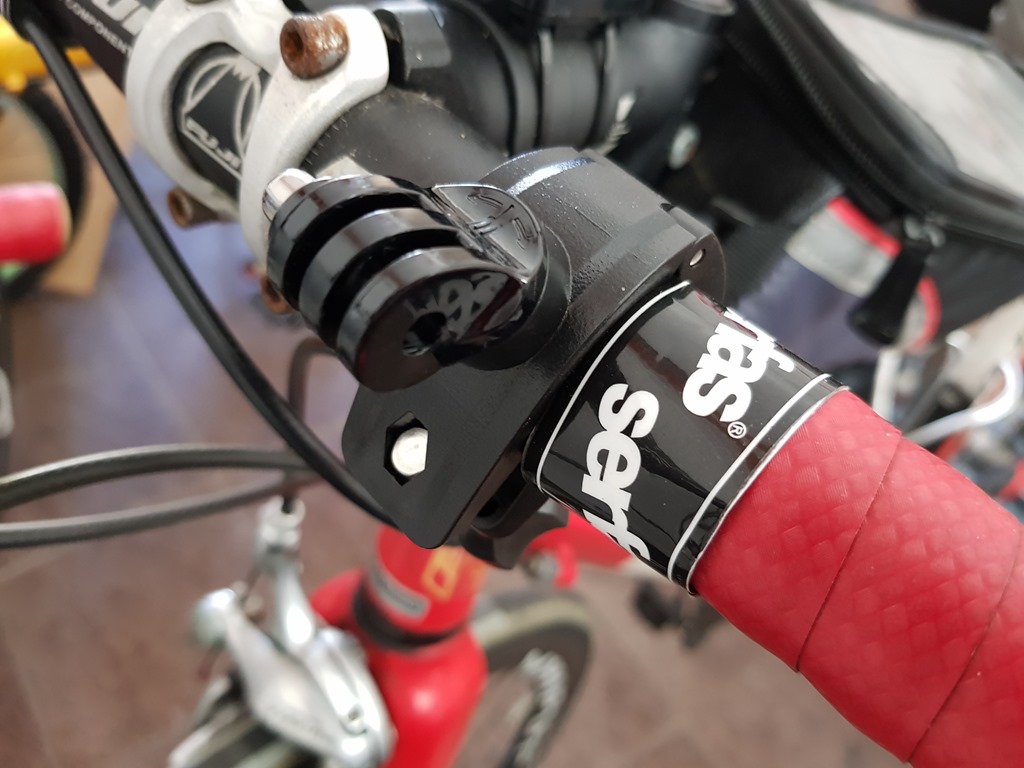 單車專用支架是利用管式固定夾,將底座架在龍頭手把上,並搭配關節的應用,讓鏡頭位置更方便對準目標位置。