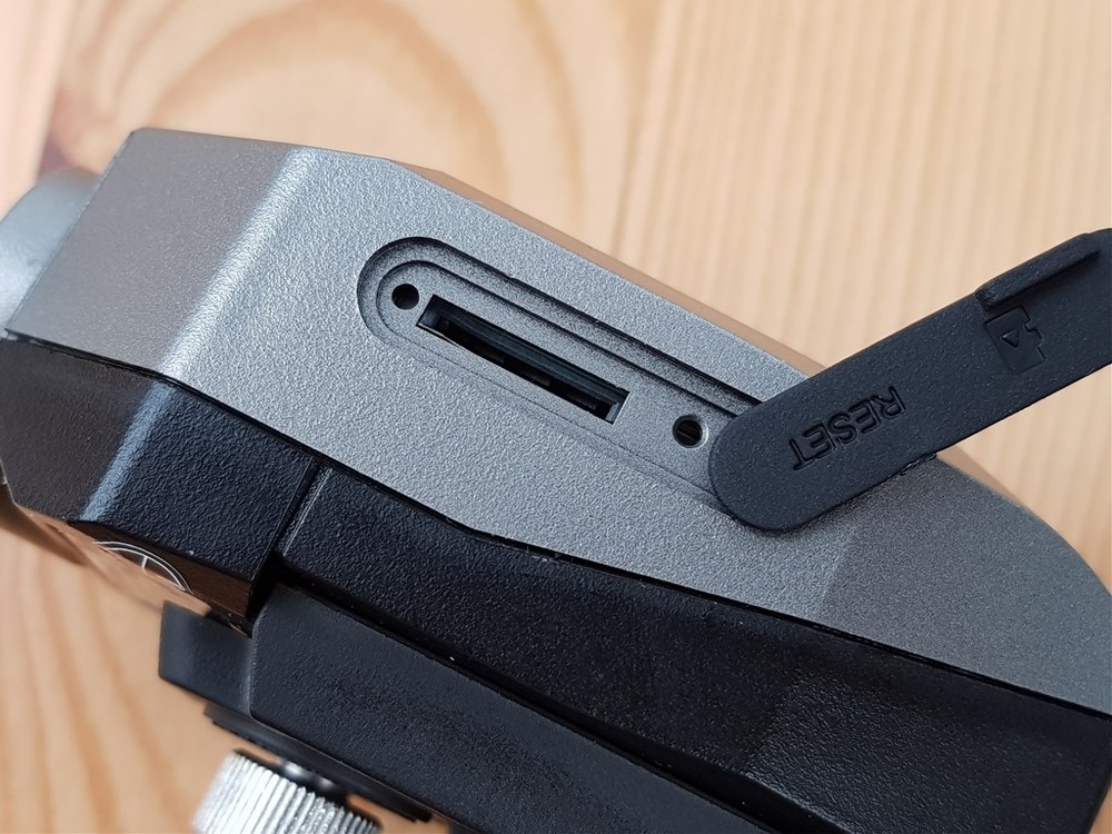 側邊為具有防水膠條設計的記憶卡與重置鍵開關,記憶卡使用 microSD,購買時就會有附贈一張 microSD Card;而 RESET 插孔是用來還原原始設定,如果要還原時就以迴紋針插下按鈕幾秒鐘即可。