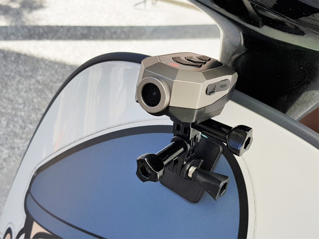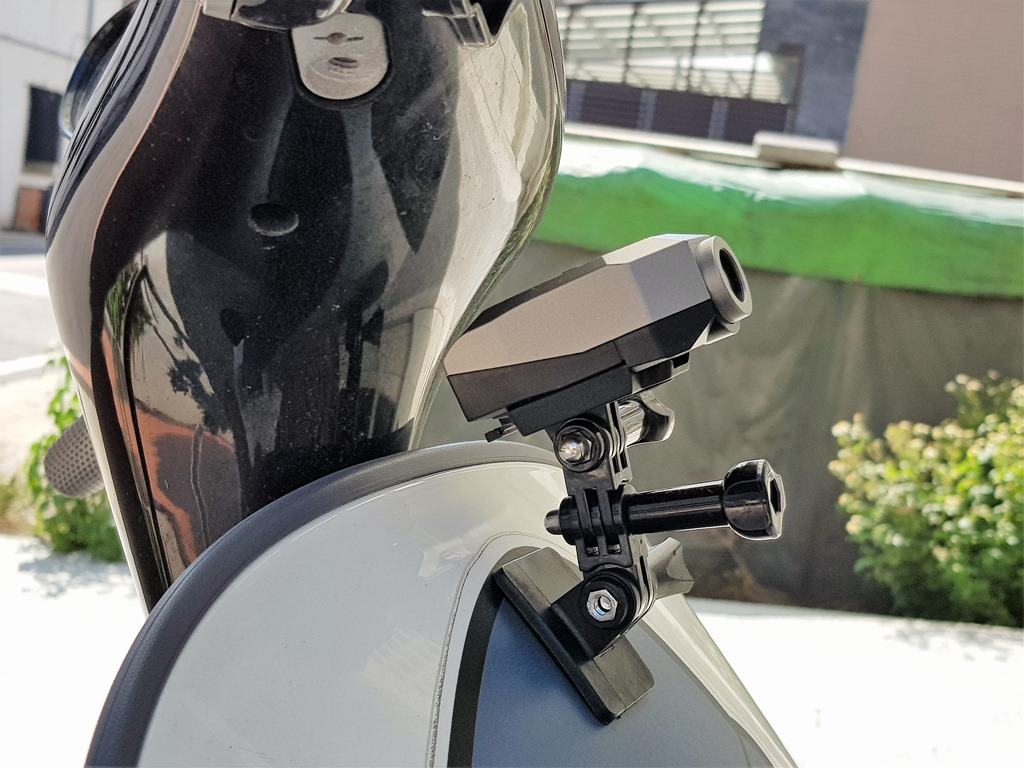 將機車行車紀錄器安裝在安全帽上,拍攝更穩定。