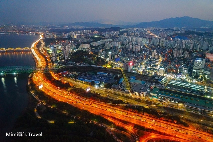從江南眺望整個江北,底下就是貫穿首爾的漢江,河面上一條條跨河大橋顯得十分壯觀,還能看到南山首爾塔呢~