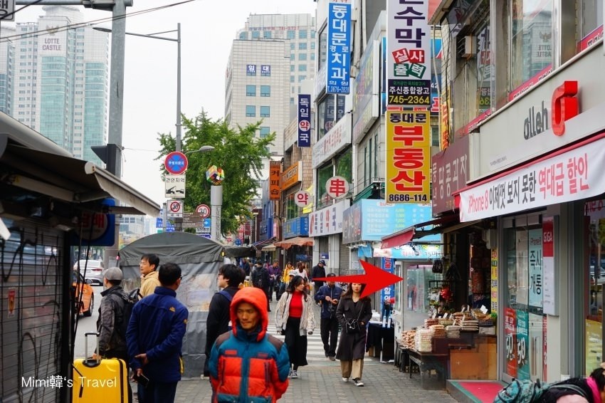 我們從東大門站四號出口站走出來,馬上右轉,入口處有掛上黃色布條,一分鐘就抵達,後面就來簡單逛逛~