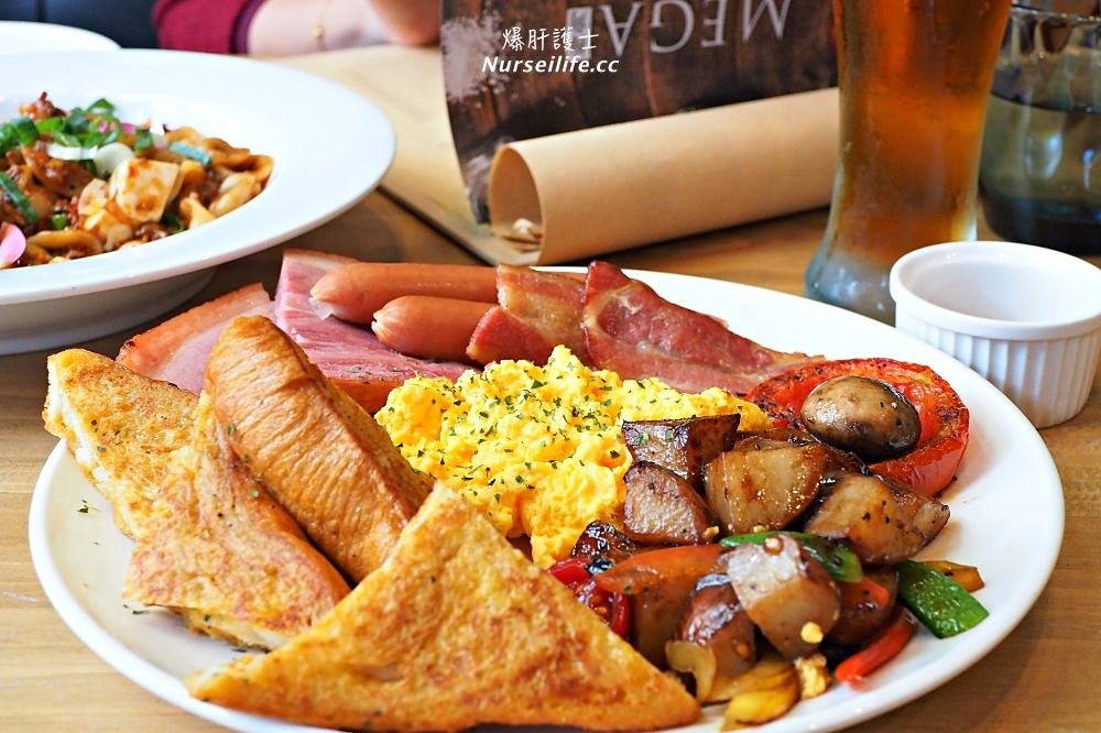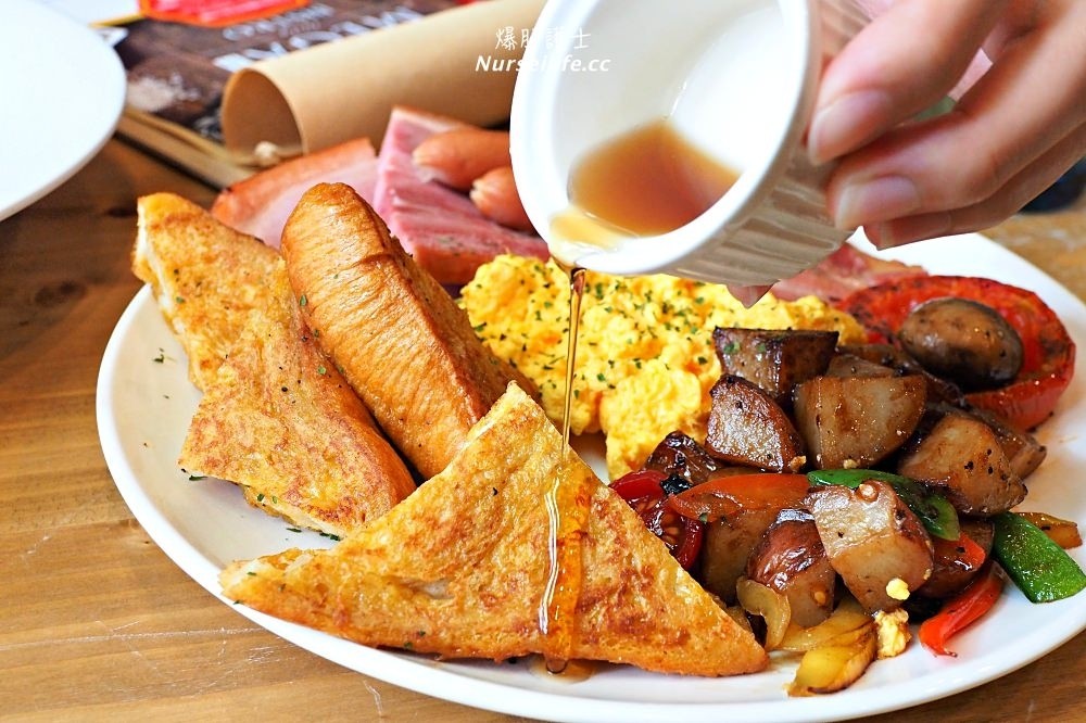 這一道是MEGA肉多多法式吐司,菜單上有肉多多和菜多多兩種選擇,在價格一樣的情況下,個人會比較偏愛肉多多,一整個就是暴龍投胎,話說這個肉多多真的是不負期望,超級多肉阿!而且還是都有挑過的,就連培根都可以吃到肉的風味,是有點厚度的那種,而不是坊間那種乾巴巴的…