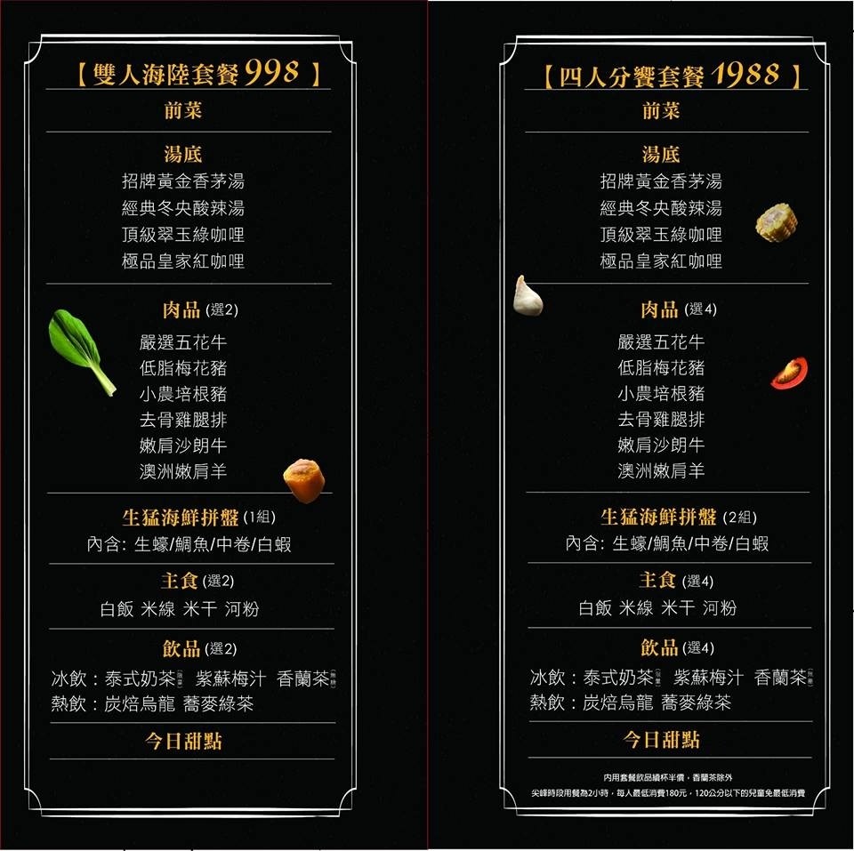 ▲▼鴛鴦鍋套餐,有豬肉、羊肉、牛肉、雞肉等,兩人來建議可以點雙人海陸套餐998元比較划算