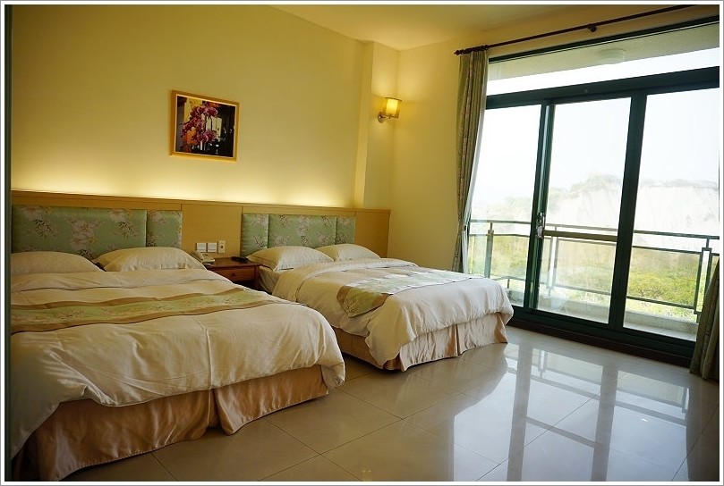 ▼像這間是四人房(定價6800元,平日65折、假日8折),不僅乾淨寬敞又舒服,且還有一個觀景陽台,不管是白天、夜晚都有不同的美景!