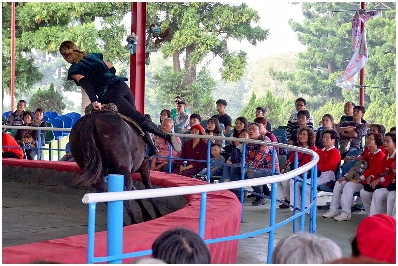 ▼女性表演者的身手優雅又矯健,不管是側騎或是翻上翻去都沒問題,看得現場觀眾目瞪口呆啊!