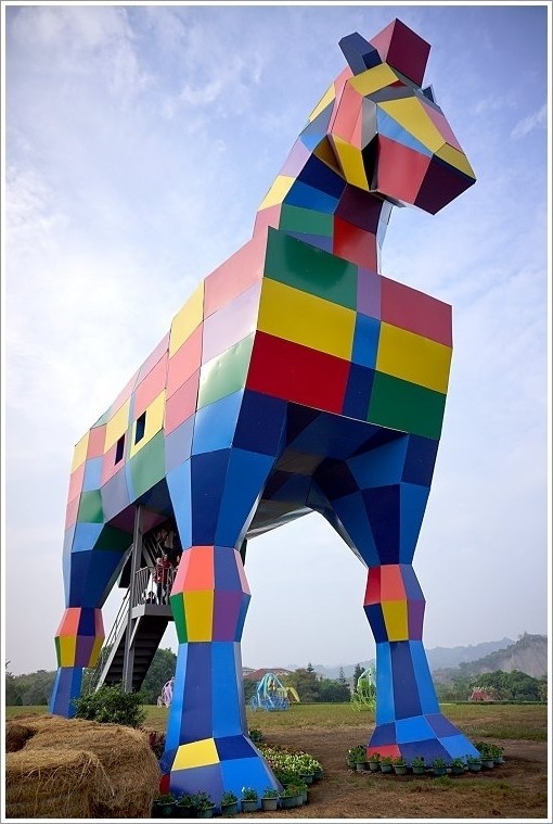 ▼這隻彩虹戰馬足足有16米高,大口站在它的下方就可以知道它到底有多大隻了吧XD